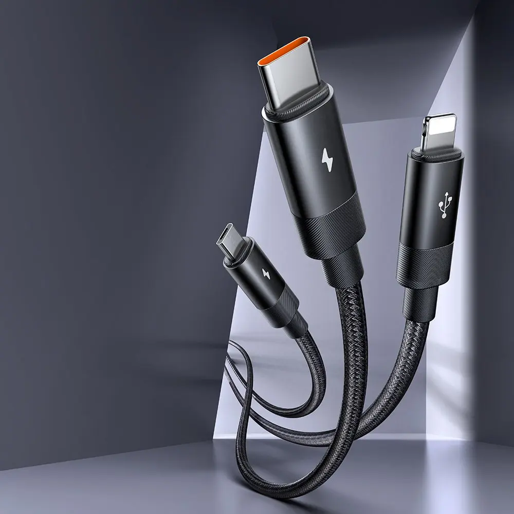 CA-5790 3'ü 1 arada USB-A'dan USB-C'ye + Lightning + Mikro USB Şarj ve Veri aktarım Kablosu 1,2 M
