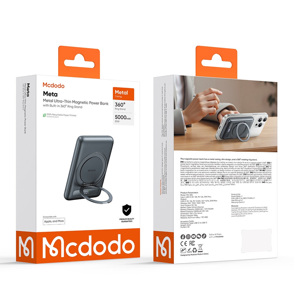 Mcdodo Meta MC-8361 | 5000mAh 20W 360° Halka Standlı Metal Manyetik Power Bank