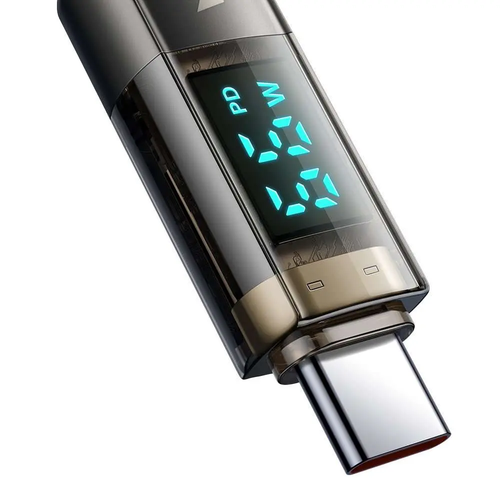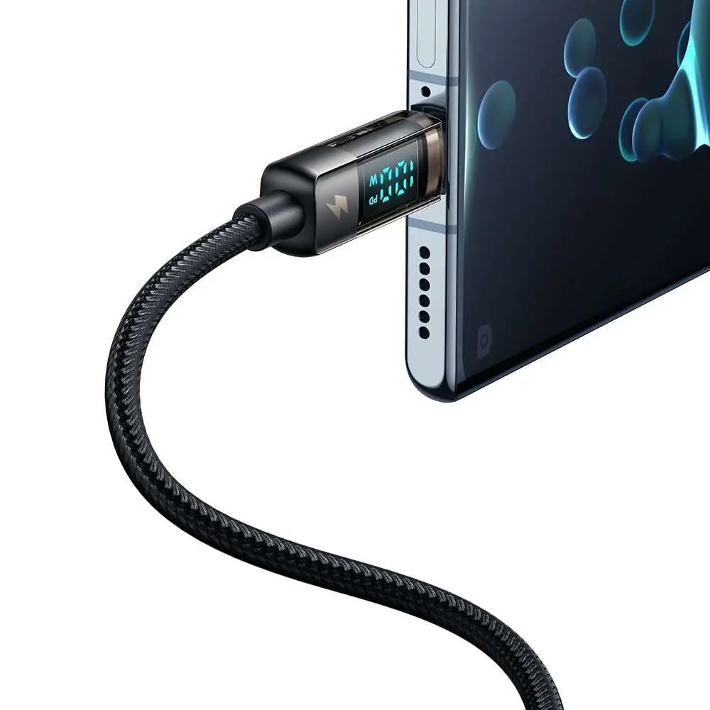 CA-3610 Type-C to Type-C Dijital Ekranlı Power Off Hızlı Şarj & Data Kablosu - Siyah 1.2M