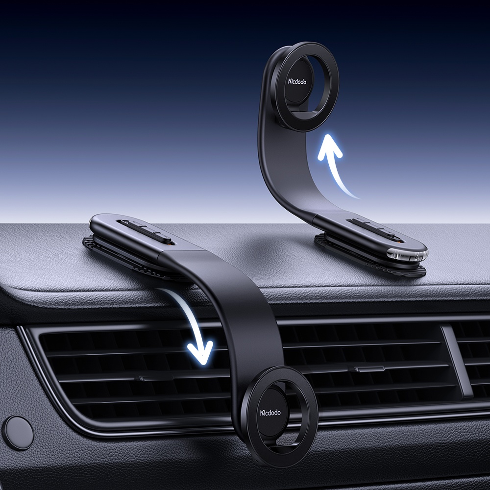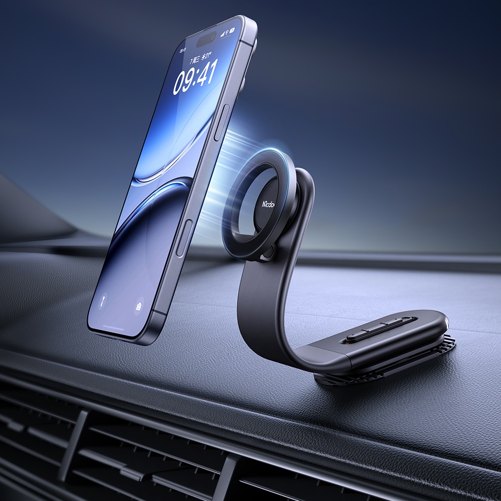 Mcdodo MagiGo Pro CM-6270, esnek gövdeli tasarımı ve güçlü manyetik tutuşu sayesinde araç içinde güvenli ve konforlu bir telefon kullanım deneyimi sunar. 180° bükülebilen alüminyum destek kolu ve 360° dönebilen manyetik başlığı ile telefonunuzu tam görüş açınıza göre ayarlamanıza olanak tanır.