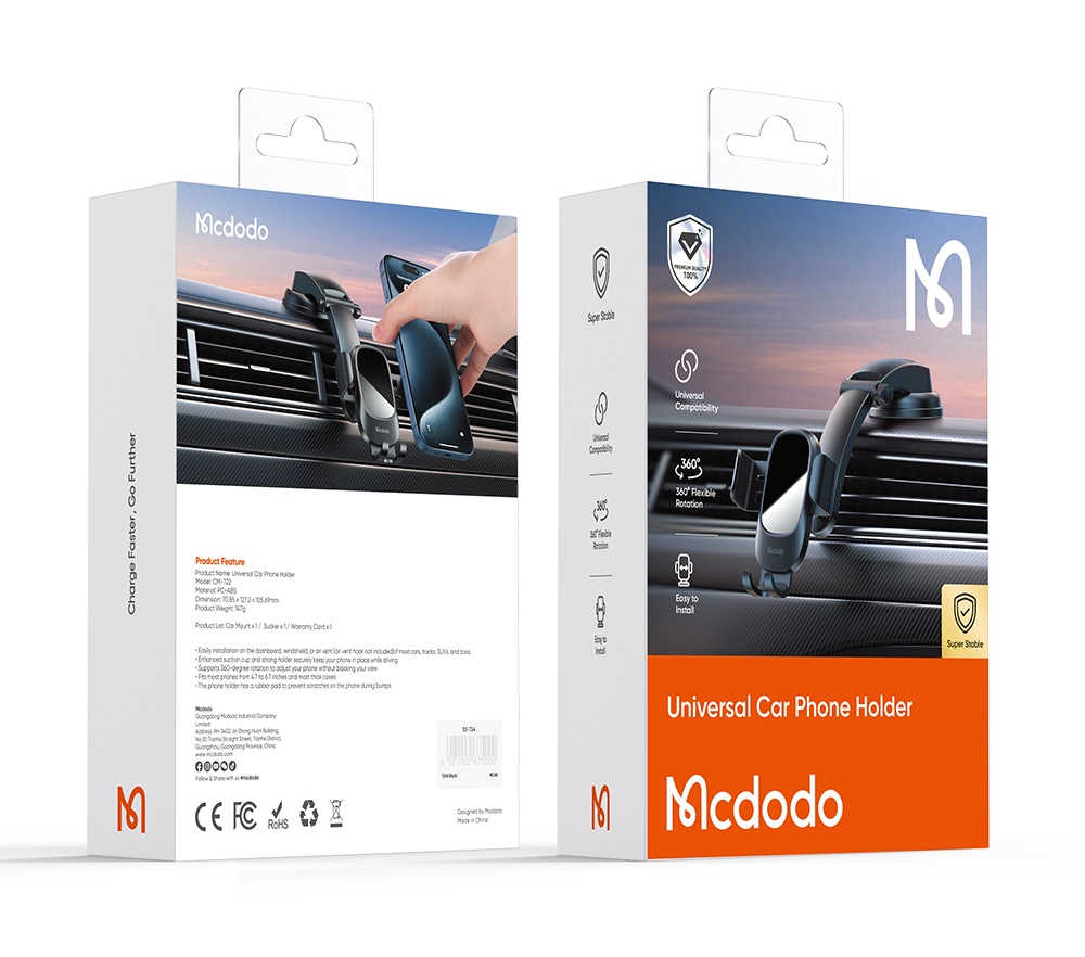 MCDODO CM-722 araç içi telefon tutucu, güçlü vakumlu sabitleme sistemi ve otomatik sıkıştırma mekanizması ile sürüş sırasında telefonunuzu güvenli şekilde sabit tutmak için tasarlanmıştır. Ön cam, torpido ve farklı düz yüzeylerde kullanıma uygun yapısı sayesinde araç içinde esnek kullanım sunar.