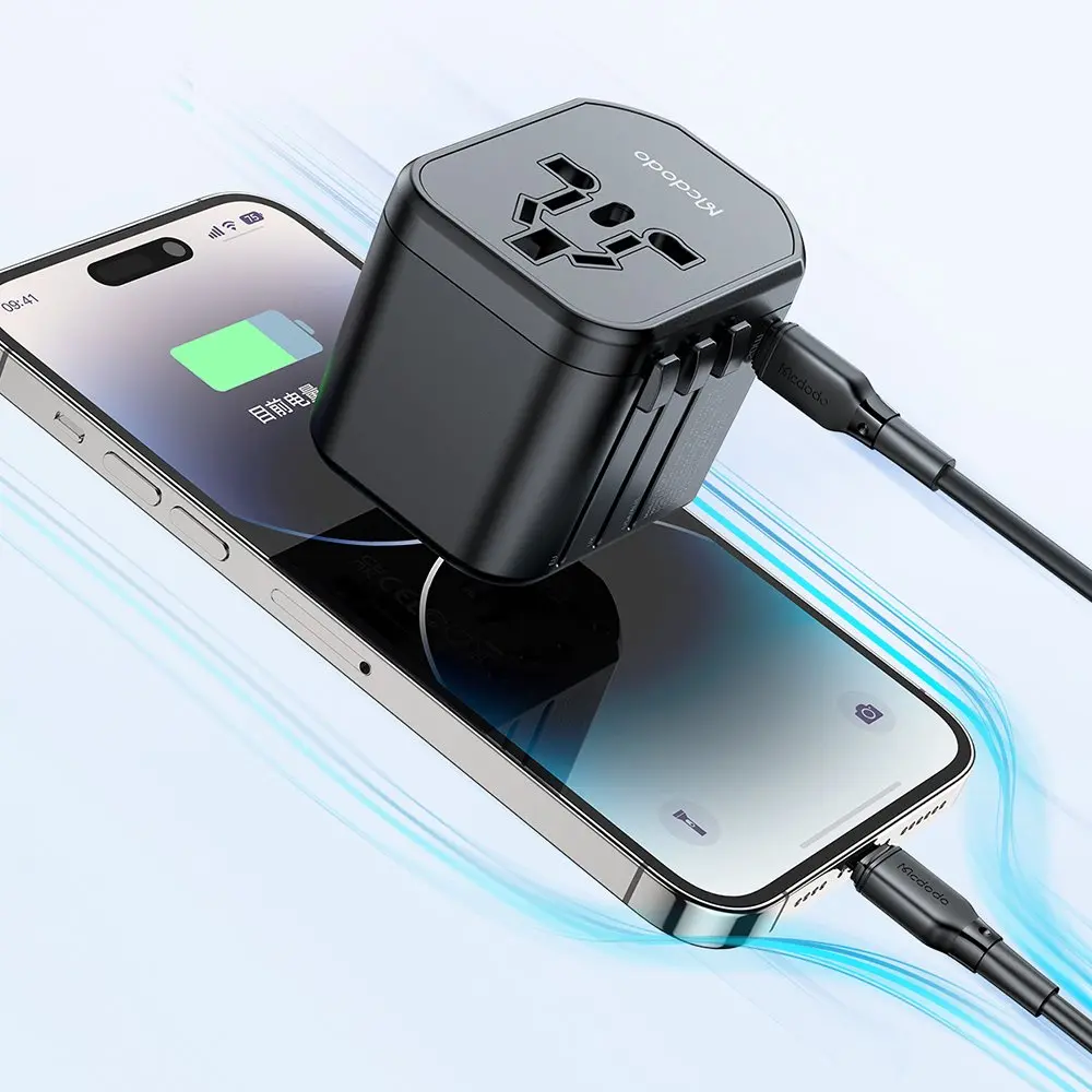 Mcdodo CP-3471 Universal Seyahat Adaptörü, dünyanın 200’den fazla ülkesinde kullanılan priz tipleriyle uyumlu yapısı ve 20W PD hızlı şarj desteğiyle global seyahatlerin en pratik çözümüdür. Hem güvenli hem de çok yönlü yapısıyla telefon, tablet ve küçük elektronik cihazlarınızı dilediğiniz her yerde hızlı ve güvenli şekilde şarj etmenizi sağlar.
