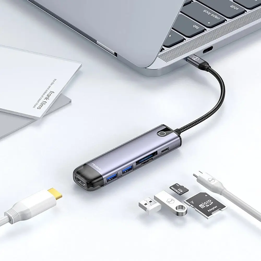 6-in-1 çoklu bağlantı: HDMI, 2× USB 3.0, Type-C PD, SD ve TF kart okuyucu