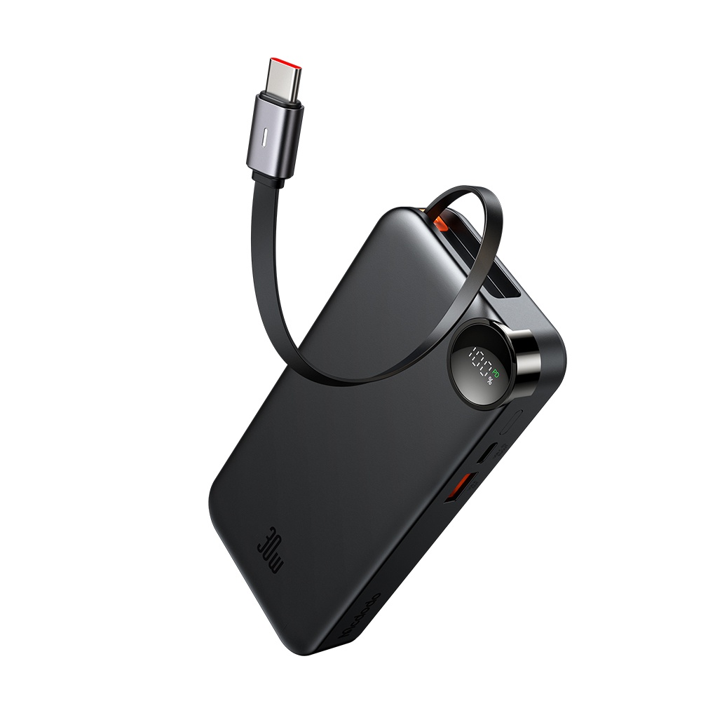 Mcdodo MC-3870 10000mAh 30W A+C Dijital Göstergeli Powerbank (Dahili USB-C Geri Çekilebilir Kablo)