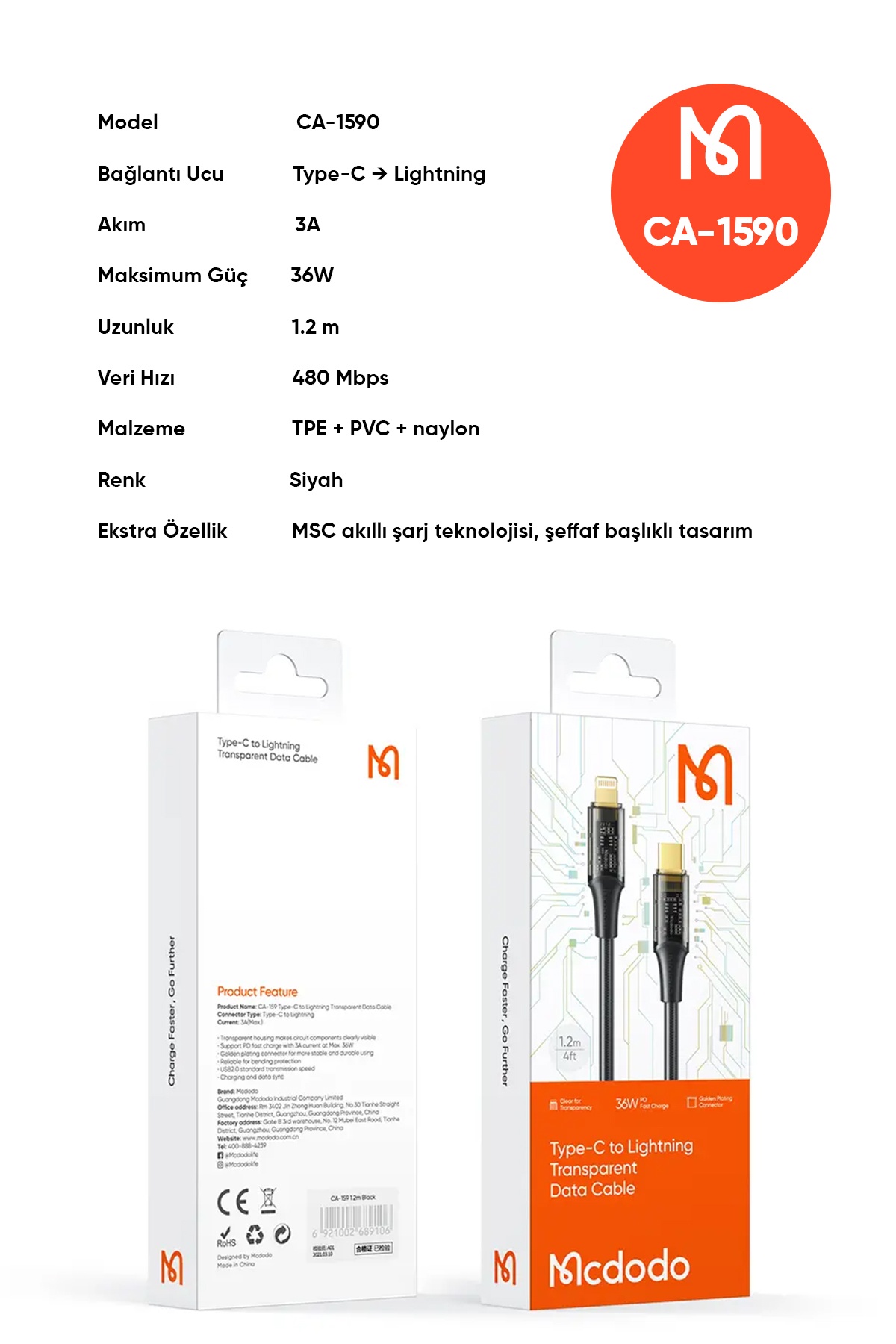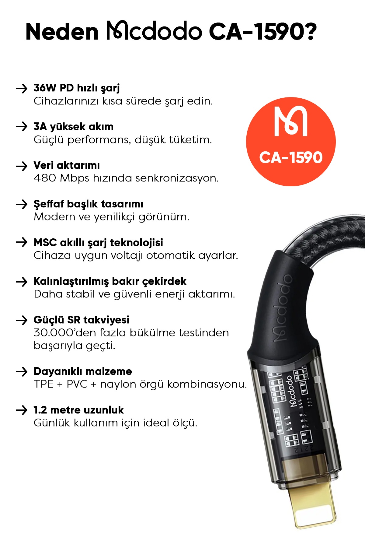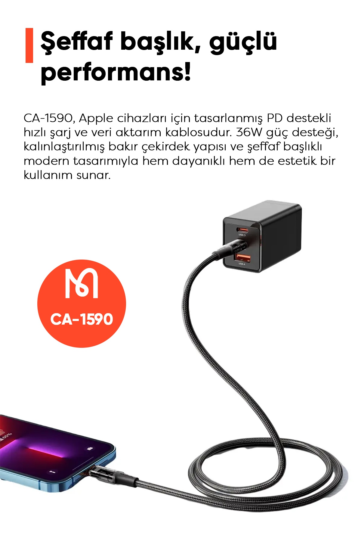 HAYATI KOLAYLAŞTIRAN ŞEFFAF BAŞLIKLI HIZLI ŞARJ KABLOSU
