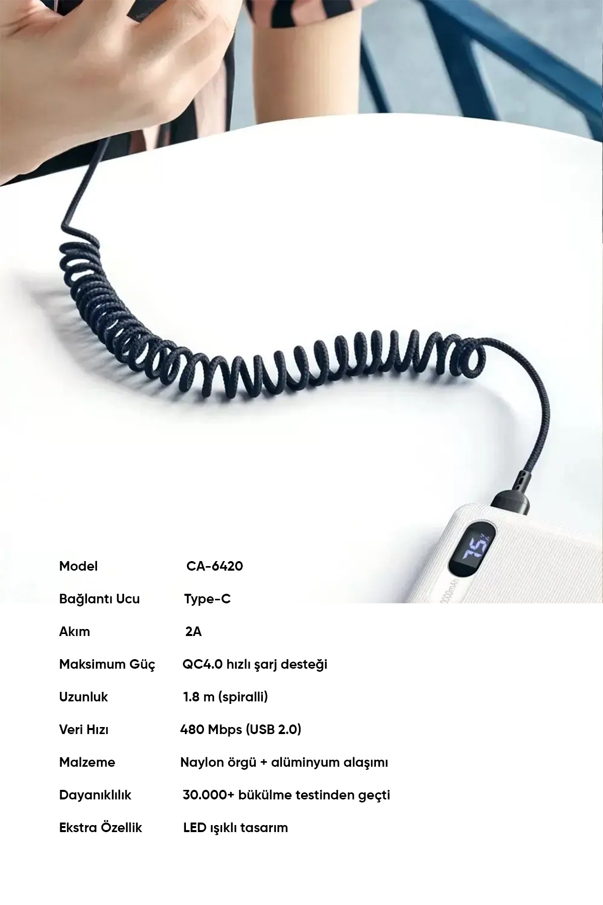 Akıllı telefonlar ve diğer cihazlar için tasarlanmış Type-C LED Işıklı Spiralli Hızlı Data/Şarj Kablosu ile deneyiminizi bir üst seviyeye taşıyın. Bu özel kablo, 2A hızlı şarj desteği ile cihazlarınızı daha kısa sürede doldurmanızı sağlarken, QC4.0 uyumu sayesinde mükemmel bir enerji optimizasyonu sunar.